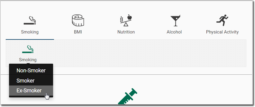 Tip:The Pack years value is determined automatically using the values entered in the Quantity, Frequency and Start Date fields.